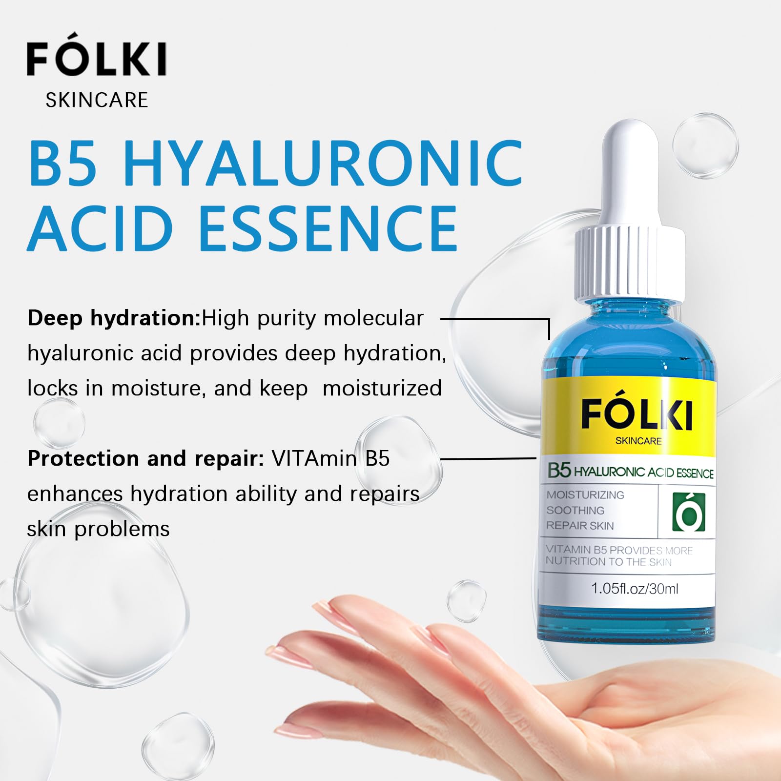 Experience the transformative power of FOLKI B5 Hyaluronic Acid Serum, designed to enhance your skin's radiance and hydration. This lightweight, transparent serum penetrates deeply to provide intense moisture, leaving your complexion visibly brighter and more elastic.